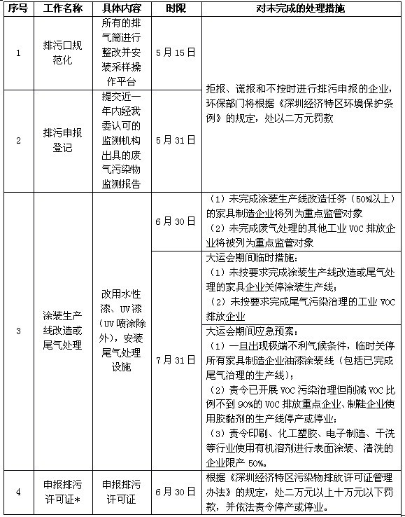 七、家具制造等VOC排放企業(yè)必須完成的工作、完成時限及對未完成的處理措施