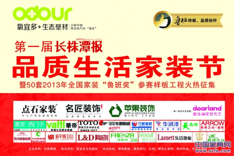 由中國建筑裝飾協(xié)會(huì)主辦的每年一度的行業(yè)評(píng)選,全國住宅裝飾裝修行業(yè)示范工程獎(jiǎng)已成為裝飾裝修行業(yè)在家裝工程質(zhì)量范疇內(nèi)的最高榮譽(yù),被譽(yù)為家裝“魯班獎(jiǎng)”。 2013年4月1日,《長株潭報(bào)》以品質(zhì)生活家裝節(jié)的名義,面向株洲征集50套全國家裝“魯班獎(jiǎng)”參賽樣板工程,精選蘋果裝飾、名匠裝飾、點(diǎn)石家裝3家頂級(jí)家裝公司,唯一指定布藝品牌蝶依斕家居布藝,這四家裝修、裝飾一線品牌,將以精湛的工藝及高品質(zhì)的服務(wù),為廣大業(yè)主設(shè)計(jì)一個(gè)能拿“魯班獎(jiǎng)的家”。