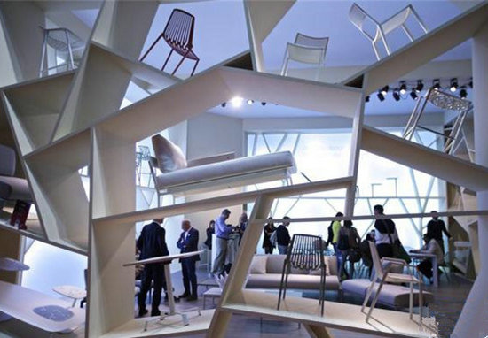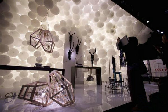 4月12日,來賓在意大利米蘭國際家具展上參觀展品。