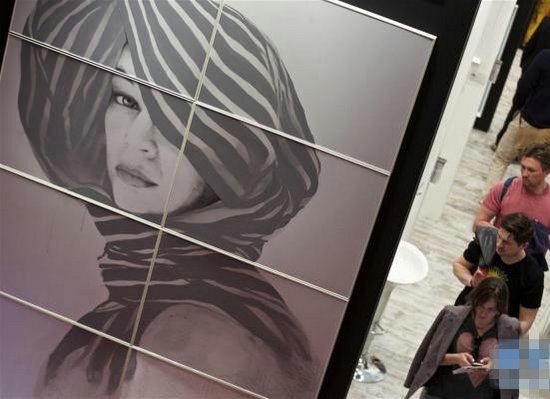 4月12日,在意大利米蘭國際家具展上,訪客參觀一家西班牙裝飾畫企業(yè)。