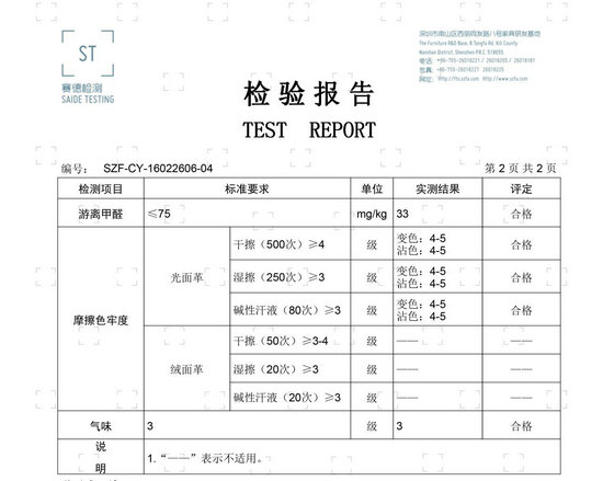2016年2月,繼1月軟床成品抽檢之后,圓方園迎來賽德檢測對其關(guān)鍵原材料的品質(zhì)抽檢,此次共抽樣5款皮革面料、2款紡織品面料,針對理化性能及環(huán)保性能進(jìn)行全面檢測,抽檢結(jié)果“符合”優(yōu)品標(biāo)準(zhǔn)要求。
