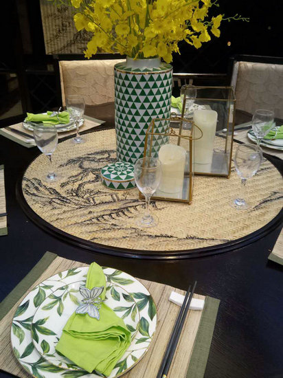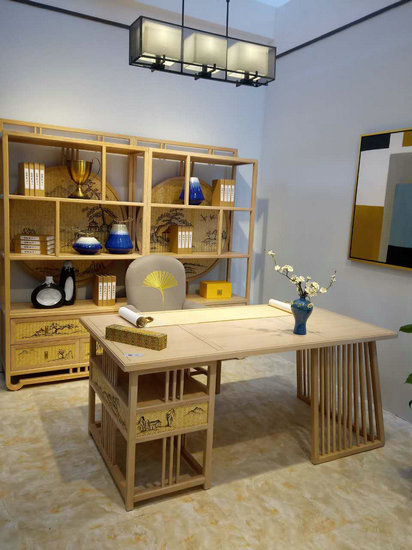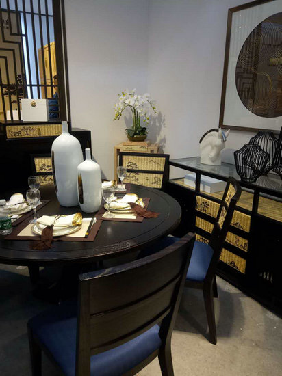 合晟東方的展位現(xiàn)場(chǎng),一幅幅已經(jīng)縹緲的山水畫感覺撲面而來。細(xì)品中既能感受到時(shí)尚現(xiàn)代元素,又能品味出傳統(tǒng)文化意味。柳編與實(shí)木的結(jié)合,巧妙的構(gòu)思,編織出時(shí)尚的圖騰案,美而不俗,簡奢時(shí)尚?;张芍心乔嗌骄G水、阡陌縱橫的獨(dú)特建筑風(fēng)格,為合晟東方的產(chǎn)品提供許多設(shè)計(jì)靈感,更為其增添些許傳統(tǒng)文化的更多內(nèi)涵。