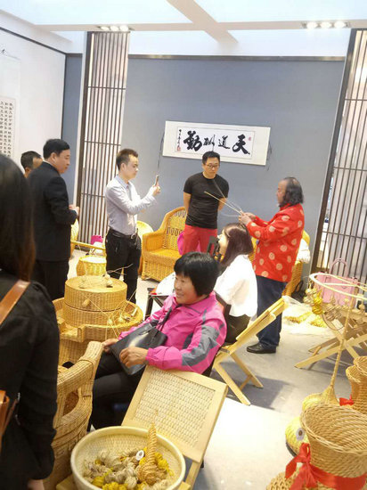 柳編大師楊進(jìn)邦現(xiàn)場(chǎng)編織作品