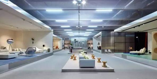 ▲Cassina 90展廳內(nèi)的地面、家具與配飾均采用柯布西耶偏愛的現(xiàn)代建筑材質(zhì)。
