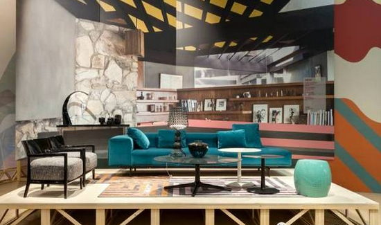 主要指材料混搭。無論是Cassina體現(xiàn)柯布西耶,還是B&B追溯龐蒂,家具乃至建筑的基本元素都從材料開始。從玻璃、水泥、金屬,到今年格外熱的水磨石,每個品牌的材料混搭秘密都藏在飾品組合中。