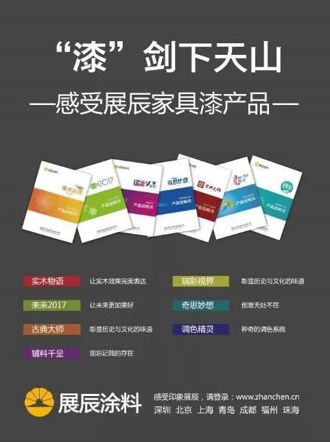早在環(huán)保風(fēng)暴之前,展辰就已經(jīng)率先研發(fā)和推廣水性漆、UV漆,展辰以超強(qiáng)的研發(fā)實力和前瞻性為中國家具涂裝環(huán)保之路領(lǐng)航;追求涂裝效果回歸自然,既是展辰涂料的特點,又是高端家具產(chǎn)品的需求;展辰涂料將時尚潮流緊密融合在涂裝工藝中,推出一款款引領(lǐng)涂裝行業(yè)潮流風(fēng)向的色彩和工藝,成為時尚、高端家具產(chǎn)品的首選……而這些“色彩”的屬性也成為消費者心中高端產(chǎn)品的代名詞。