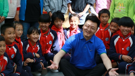 ▲ 殷艷明先生與孩子們?cè)谝黄?/p>