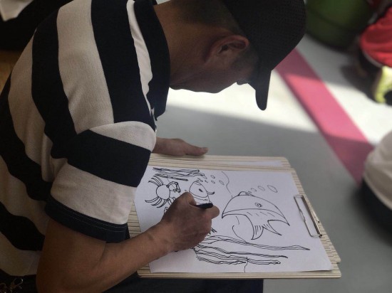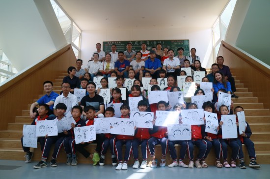 主辦方發(fā)言結(jié)束后,美學(xué)課堂也正式拉開(kāi)了序幕!第一堂課的主題是“臉的創(chuàng)作”,支教老師靳如興鼓勵(lì)孩子們畫出有特點(diǎn)的表情,并從中感受創(chuàng)作的快樂(lè)。