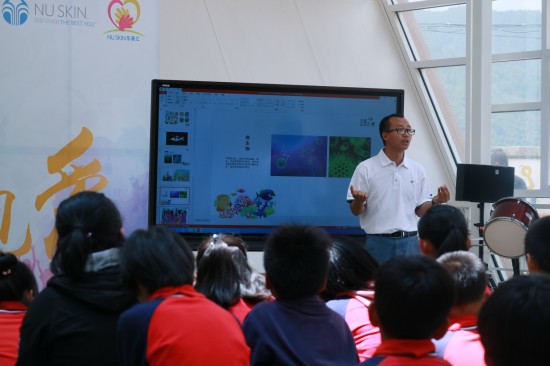 ▲ 昆明十中老師張盛參與課堂與孩子們互動(dòng)