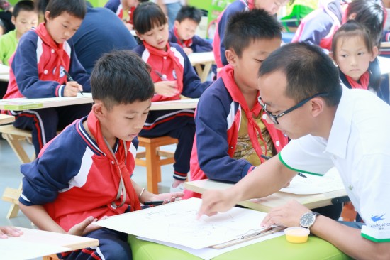 ▲ 深圳大美藝術(shù)中心支教老師李凌教學(xué)