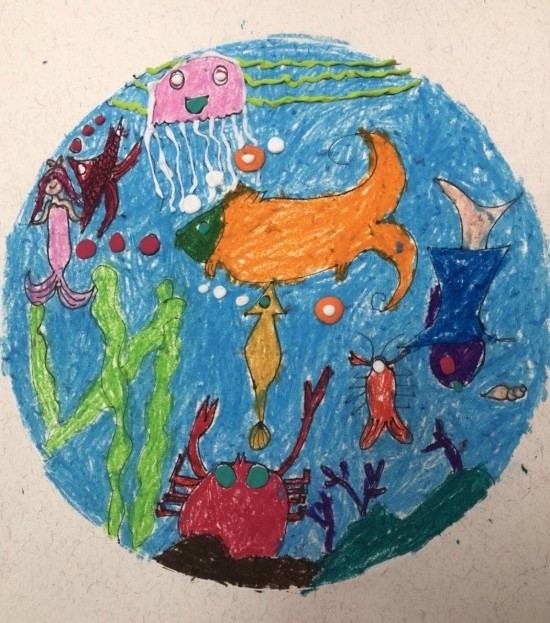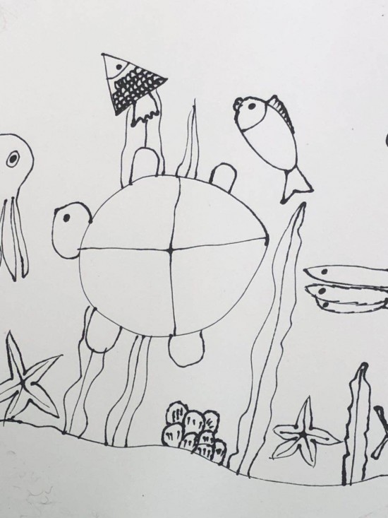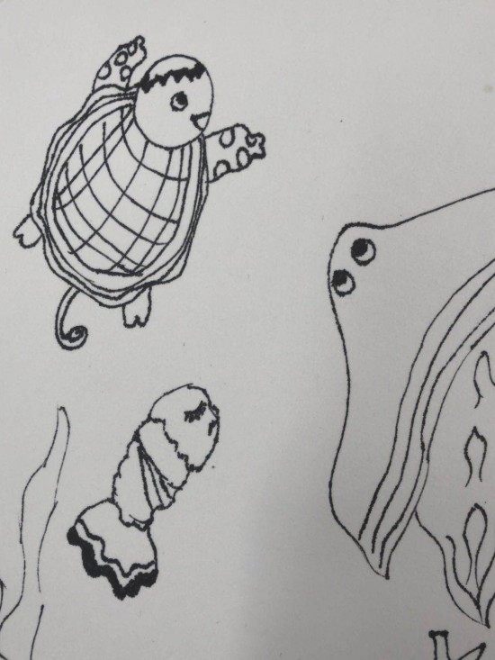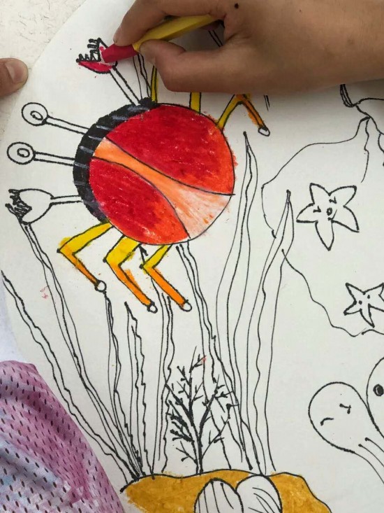 第二堂課的創(chuàng)作主題是“夢(mèng)幻海洋”,支教老師李凌鼓勵(lì)孩子們放飛想象,描繪他們眼中的大海,培養(yǎng)孩子們愛(ài)護(hù)海洋,保護(hù)動(dòng)物的觀念。