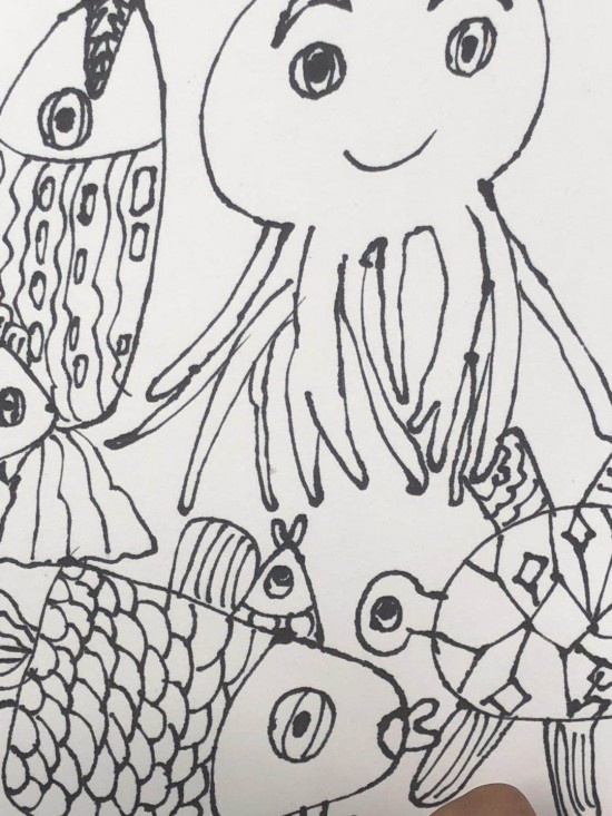 經(jīng)過(guò)支教老師的講解和其他幾位老師的同臺(tái)傾授以及嘉賓們的輔導(dǎo)創(chuàng)作,一小時(shí)后,孩子們的萬(wàn)千海洋世界的美術(shù)作品就誕生了!現(xiàn)場(chǎng)還有學(xué)生家長(zhǎng)也跟著認(rèn)真描摹起來(lái)。
