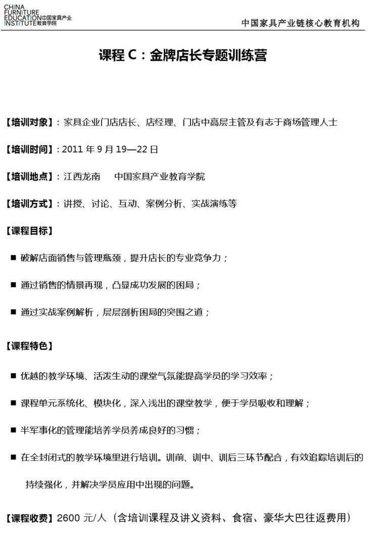 • 2012年家具產(chǎn)業(yè)教育學(xué)院公開(kāi)課程課表