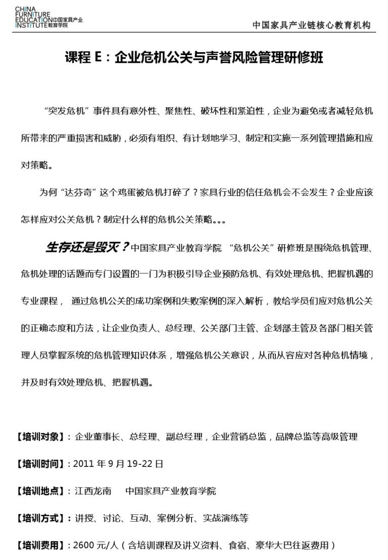• 2012年家具產(chǎn)業(yè)教育學(xué)院公開課程課表