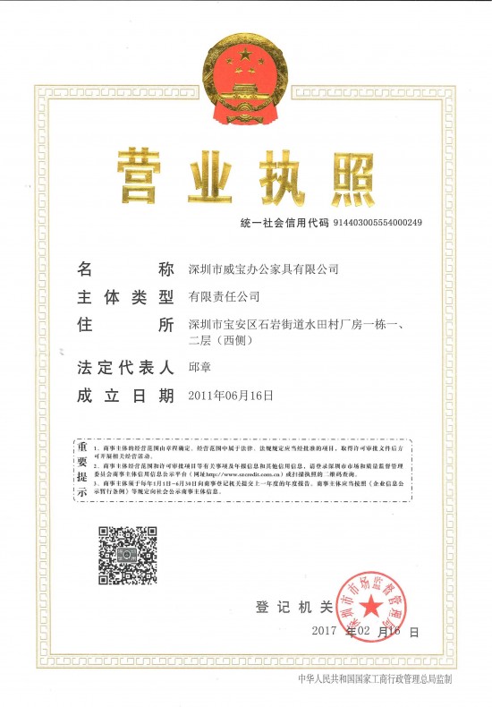 | 發(fā)證機(jī)構(gòu): | 深圳市市場監(jiān)督管理局 | 發(fā)證時(shí)間 : | 2017-02-16 |