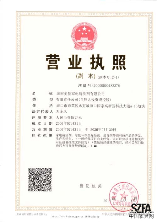 | 發(fā)證機(jī)構(gòu): | 海南省工商行政管理局 | 發(fā)證時間 : | 2015-07-15 |