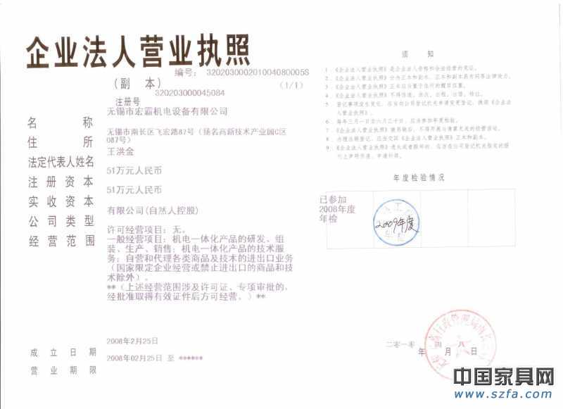 | 發(fā)證機(jī)構(gòu): | 無(wú)錫市工商局南長(zhǎng)分局 | 發(fā)證時(shí)間 : | 2007-02-28 |