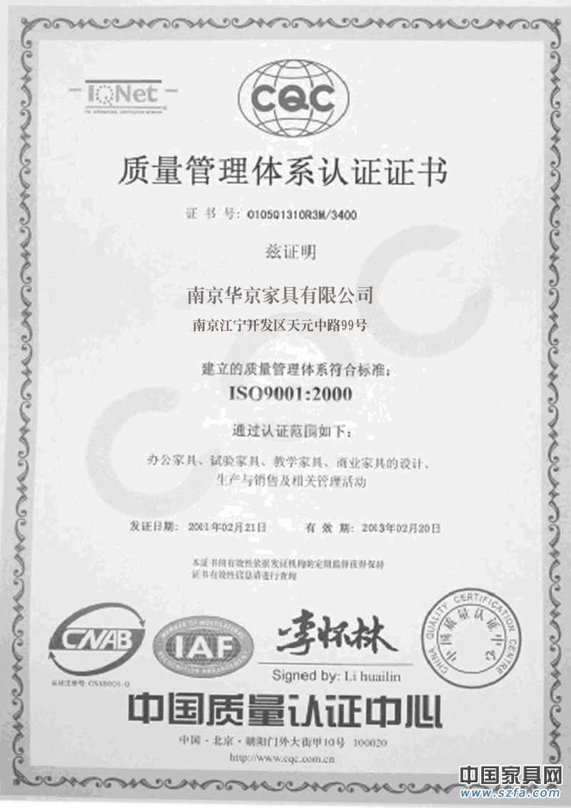 榮譽(yù)資質(zhì) 質(zhì)量管理體系認(rèn)證證書