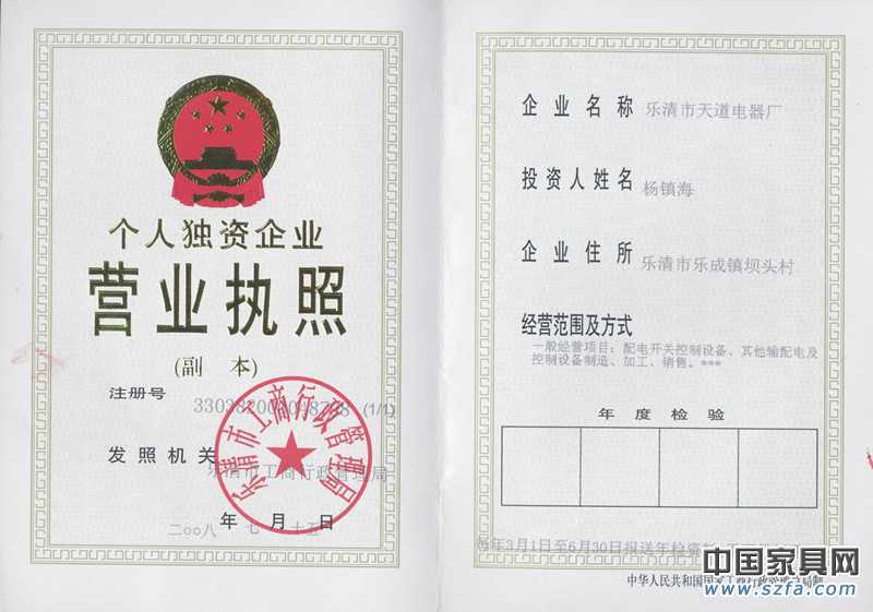 | 發(fā)證機(jī)構(gòu): | 樂清市工商行政管理局 | 發(fā)證時間 : | 2008-07-15 |