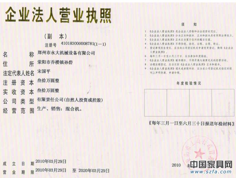 | 發(fā)證機(jī)構(gòu): | 滎陽(yáng)市工商行政管理局 | 發(fā)證時(shí)間 : | 2010-03-29 |