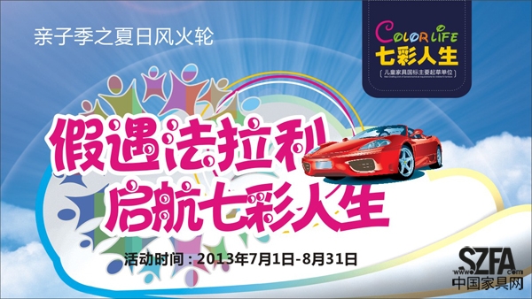 怎樣才能讓孩子們度過(guò)一個(gè)快樂(lè)而又難忘的暑假呢?深圳市七彩人生家具有限公司致力于打造青少年兒童家具頂尖品牌,在這個(gè)暑假,給孩子一個(gè)七彩假日。將于2013年7月1日—2013年8月31日攜手深圳市騎達(dá)貿(mào)易有限公司舉辦“親子季之夏日風(fēng)火輪”主題活動(dòng)。在全國(guó)各店面開(kāi)展法拉利試駕體驗(yàn)。
