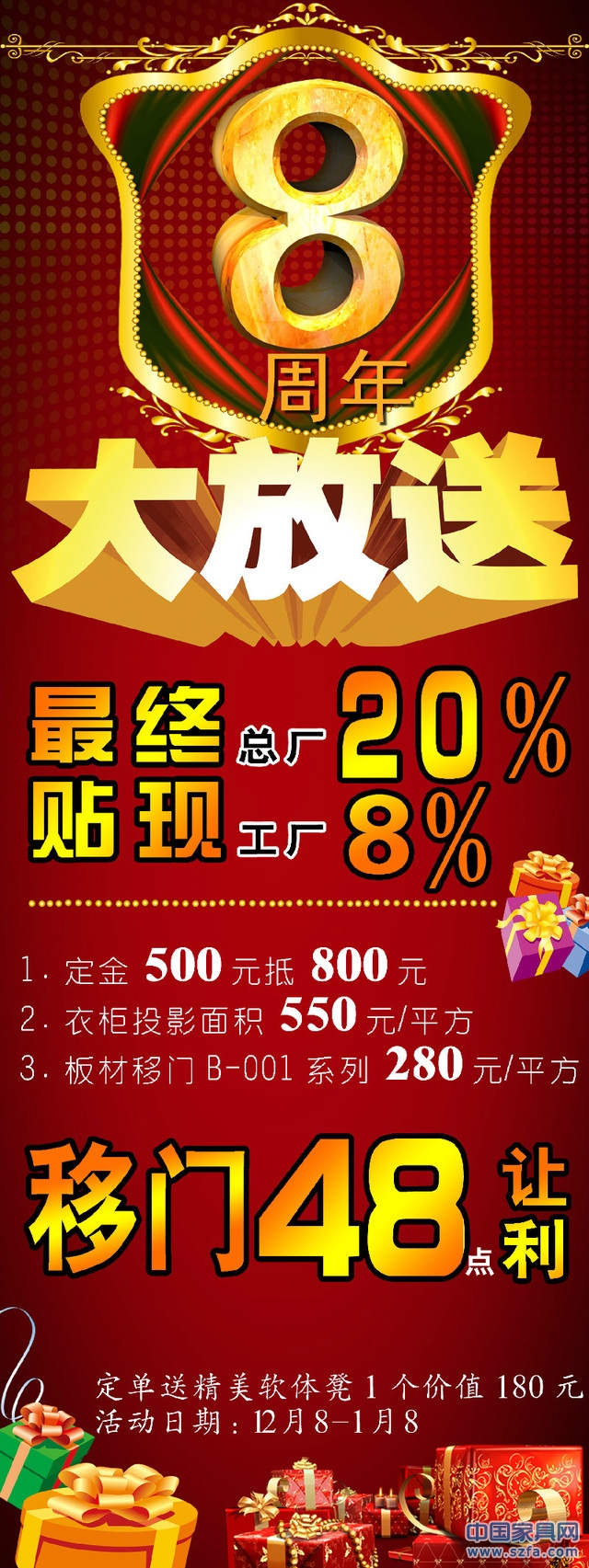 為慶祝公司誕生8周年,我公司幾日舉行8周年店慶活動,年底到了,公司此次活動為為了來年有個更美好的開始,所以此次活動給與客戶讓利幅度巨大。