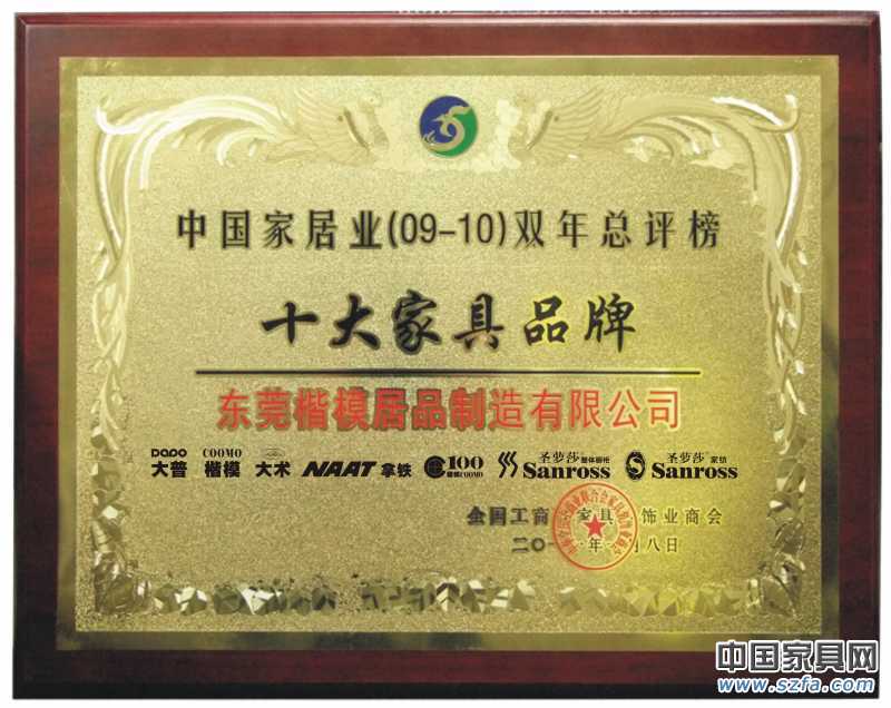 中國(guó)居業(yè)09-10雙年總評(píng)榜十大家具品牌獎(jiǎng)
