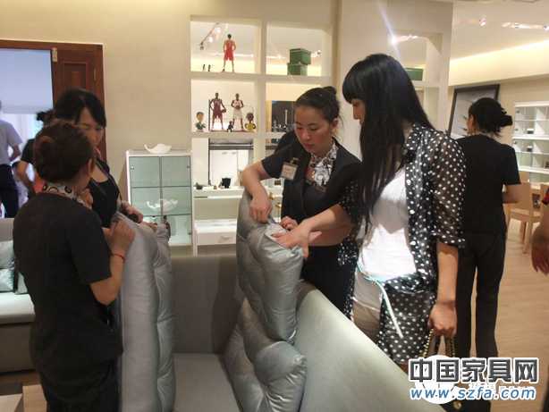 參觀過程中設(shè)計師們表示,楷模家具中西結(jié)合、風(fēng)格多樣,總體設(shè)計溫馨、和諧,人性化的設(shè)計很好地將生活細(xì)節(jié)融入到設(shè)計里面,設(shè)計水平和制作工藝屬國內(nèi)領(lǐng)先。設(shè)計師們不時向工作人員詢問每款家具的設(shè)計細(xì)節(jié),紛紛拍攝楷模產(chǎn)品、做記錄和索取相關(guān)資料。楷模家具的很多國內(nèi)首創(chuàng)設(shè)計如艾格沙發(fā)抱枕、歐寶沙發(fā)、藍(lán)寶沙發(fā)等,也給設(shè)計師們留下了極其深刻的印象。參觀時,著名空間設(shè)計施繼誠先生給予了楷模家具設(shè)計“獨一無二,家裝、飾品與家具完美結(jié)合”的高度評價。