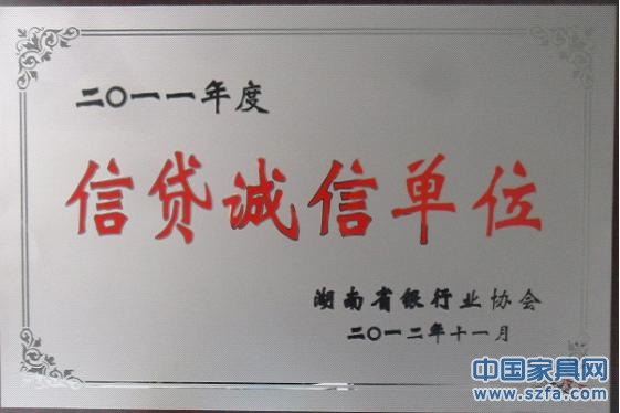 蝶依斕品牌旗下株洲市家家樂布藝公司榮獲“2011年度信貸誠信單位”稱號