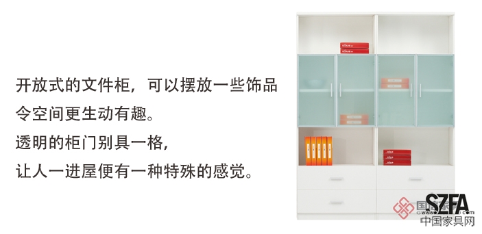 文件柜也是辦公空間必不可少的,色彩柔和的文件柜能使人平靜,減輕緊張感。選擇文件柜首先要保證儲(chǔ)放空間大,其次不要太占用空間,這樣辦公空間比較開闊,另外選擇開放式的文件柜,可以擺放一些飾品令空間更生動(dòng)有趣。透明的柜門別具一格,讓人一進(jìn)屋便有一種特殊的感覺(jué)。