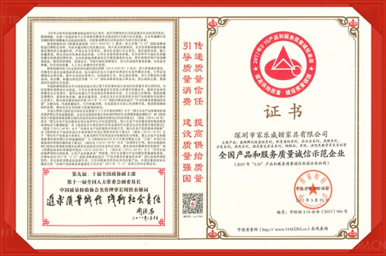 在本次“產(chǎn)品和服務(wù)質(zhì)量誠信承諾”的主題活動評比中,深圳家樂威頓家具有限公司在近2000家參與的企業(yè)中,積極踐行產(chǎn)品和服務(wù)質(zhì)量誠信承諾,讓廣大消費者分享更多的質(zhì)量紅利,倡導(dǎo)提高供給質(zhì)量,推動質(zhì)量社會共治。