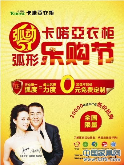 卡喏亞衣柜弧形樂購節(jié)來了!好衣柜攜手陳建斌、蔣勤勤夫婦舉辦“弧動五一”樂購盛會,讓家具弧動起來!150度弧線設(shè)計,行業(yè)唯一弧度,最潮最先進(jìn),別家都沒有!在樂購節(jié)期間,卡喏亞以最大的優(yōu)惠力度感恩全國億萬消費者!20000件弧形產(chǎn)品低價搶購,全國限量,錯過就是遺憾!還有加弧不加價,0元免費定制等震撼巨惠,不參與就遺憾!讓我們一起弧動五一,High翻整個五月!