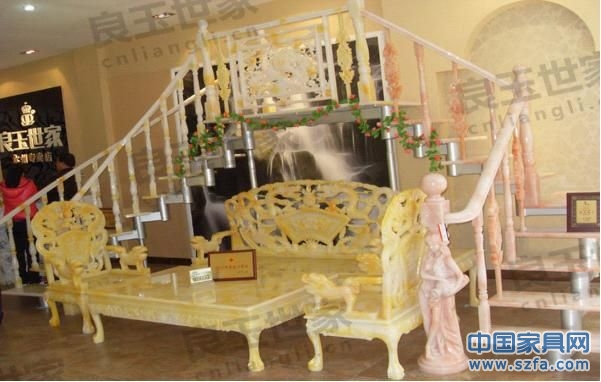 玉石沙發(fā)、西餐桌、圓桌、樓梯扶手、壁爐、羅馬柱