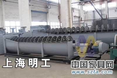 2、沉沒(méi)式分級(jí)機(jī):溢流端的螺旋葉片全部浸入溢流面以下。主要適用于溢流粒度為0.15-0.07mm的礦石分級(jí)。