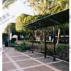 鋼木結(jié)構(gòu),鋼鐵經(jīng)過打砂噴鋅防銹處理,正常使用期達(dá)5年以上不生銹! 噴涂抗紫外線專業(yè)戶外粉末. 木條可選進(jìn)口山樟木,杉木,松木,環(huán)保木,防腐木等.經(jīng)過特殊處理表面噴琥珀黃戶外漆,