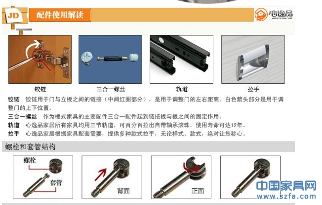 安裝說明:產(chǎn)品都是原封包裝發(fā)貨,貨到要求自己組裝。配件齊全,孔眼都已經(jīng)打好, 用螺絲擰上就可以了。安裝不難,但還是需要一些基本的機械知識以及一點領(lǐng)悟能力的,如 果您對此一竅不通,我們還是建議您找個木匠師傅幫忙安裝。如果有遇到什么問題,可以隨 時聯(lián)系我們,我們技術(shù)員可以指導(dǎo)您!另外我們的板材是優(yōu)質(zhì)板材,密度大,比較沉,安裝 是個體力活。如果您是MM,而且購買的是大件的話,我們不建議您自己安裝。