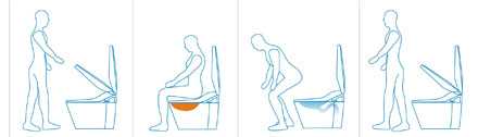 | 當(dāng)您如廁時按下“臀部”鍵或“女性”鍵時,將自動啟用溫水臀部沖洗或女性專用沖洗,沖洗完畢后自動沖廁排污,并自動啟用烘干程序,烘干后起身離開,10秒后自動合蓋并除臭殺菌。整個如廁過程僅需一個鍵。方便、快捷、舒適! |