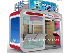 隔熱、隔音、防火、防潮,這種板強度大,有足夠的支撐作用。四、報刊亭售貨亭門采用高靈敏度卷簾門,四邊用膠條密封,絕不漏水,隔音效果良好。五、報刊亭天花吊頂采用優(yōu)質裝飾板,全為活動可左右移開,方便線路安裝,維護。六、售貨亭報刊亭售貨工作臺全為電解板工作臺,配有票箱、錢箱、抽屜,安裝方便,抽內(nèi)設有3個錢夾和1個票據(jù)空位,票箱裝在左側靠邊,裝票時可拉出,方便、快捷。北京早餐亭,上海彩鋼早餐亭,天津彩鋼早餐亭生產(chǎn)廠家七、材料厚度為1.2MM。材料分析請聯(lián)系億科覃經(jīng)理:13427884739/QQ:1054960906 八、報刊亭內(nèi)地板采用符合優(yōu)質鋼龍骨架上鋪模板貼2.0mm厚防滑鋁板。九、報刊亭內(nèi)配置兩個節(jié)能吸頂燈,安裝攝像機所需支架與應急燈掛靠位。十、報刊亭亭頂裝有空調(diào)架,內(nèi)部留有室內(nèi)機插孔。 www.dgyike.com十一、報刊亭亭頂部設有吊環(huán),方便吊運。十二、報刊亭內(nèi)門口配置一個衣帽架(鉤)。十三、報刊亭門鎖為分體房門鎖,使用壽命長,出現(xiàn)故障率相當?shù)?。十四、報刊亭?nèi)電路完全依公路收費亭標準設計。十五、報刊亭售賣亭使用環(huán)境溫度:±40℃——80℃,濕度10%——90%。十六、報刊亭售賣亭內(nèi)工作臺高度為800mm。