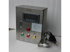 定量控制儀在接收了流量計(jì)的流量信號(hào)后,在其內(nèi)部完成流量的累計(jì),同時(shí)在控制儀內(nèi)部設(shè)定好所需要的定量控制值,當(dāng)定量控制儀顯示的累計(jì)數(shù)值達(dá)到所設(shè)定的定量控制值時(shí),定量控制儀輸出開關(guān)量信號(hào)。此時(shí)利用該開關(guān)信號(hào)通過配接繼電器或接觸器來控制安裝在管道上的斷流設(shè)備,從而達(dá)到定量控制的效果。