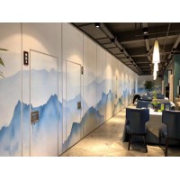 上海達(dá)有建筑裝飾材料有限公司制作的隔墻運動時由天花懸掛系統(tǒng)受力,地面不再鋪設(shè)地軌,推動輕便,無噪音;<br>