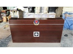 新型審訊桌,三聚氫氨家具板制作,保證地區(qū)氣候差異不變形,使用壽命長,整體設計簡潔大方嚴肅,周邊淺色條為鋁合金鑲嵌,前方裝有警徽(或檢徽)和射燈,局部可軟包處理,后方有抽屜及放電腦主機滑車,可同時坐三位辦公人員,桌子長度為1.8米,寬度為0.8米。拆卸包裝運輸,保證安全到達,備有現(xiàn)貨!