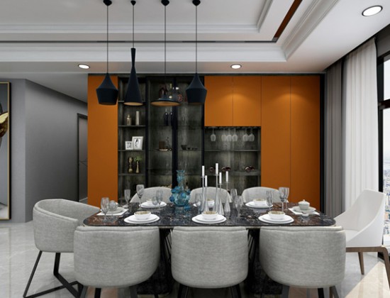 餐廳區(qū)域色調(diào)淡雅,整體空間特別開闊通透,與橘白的燈光在一起,則烘托出安靜的氣氛。減去人們內(nèi)心的浮躁,帶來平和,使我們更注重食物所帶給味覺、嗅覺的美妙感