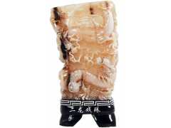 1)、本品乃傳統(tǒng)手工雕刻工藝與天然牛角材質的完美融合。綜觀此品,雕工精美,造型優(yōu)雅,二龍戲珠,祥瑞浮現;