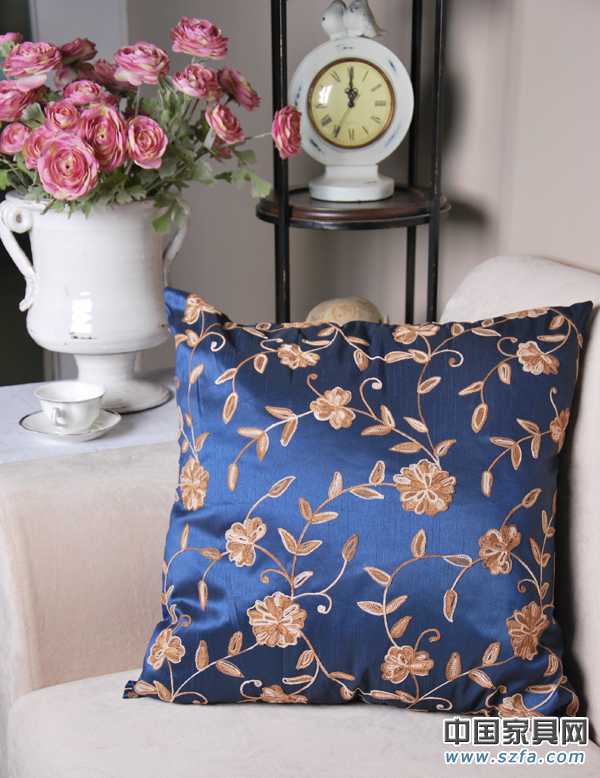 抱枕批發(fā)供應(yīng)商提供抱枕批發(fā)幽雅花香.竹節(jié)色丁繡花藍(lán)色靠包套