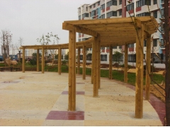 青島宏圖防腐木景觀工程有限公司承接防腐木施工,防腐木廊架,木廊架,木花架,景觀木廊架,長廊架等