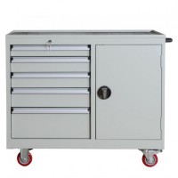 6、帶腳輪,耐油、耐磨、移動(dòng)輕便、靈活,腳輪配有剎車,剎住后可固定小車(標(biāo)準(zhǔn)移動(dòng)工具柜配置單剎,特殊要求可配置雙剎)。