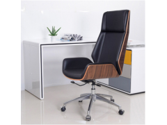 北歐真皮辦公職員椅 主管椅滑輪旋轉(zhuǎn)升降椅時尚高背曲木椅特價