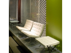 設(shè)計背景:巴塞羅那椅(Barcelona Chair)是由密斯.凡.德羅(Mies vander Rohe)在1929年為巴塞羅那世博會設(shè)計的偉大作品,開創(chuàng)了現(xiàn)代設(shè)計先河,并被德國作為禮物送給西班牙國王,這件作品被視為二十世紀(jì)最經(jīng)典的椅子流行至今。眩亮的不銹鋼和柔軟的皮革完美結(jié)合在一起,讓空間充滿了時代感。巴塞羅那椅(Barcelona Chair)已經(jīng)被多家博物館收藏。