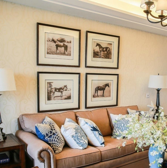 墻畫起著平衡空間、點亮裝飾效果的重要作用,在中小戶型空間中更能有效拉伸空間縱深。設(shè)計師選擇畫框簡約、畫面與整體風(fēng)格相呼應(yīng)的裝飾畫,并根據(jù)空間布局,選擇正確的陳列方式,助力中小戶型美式休閑格調(diào)。