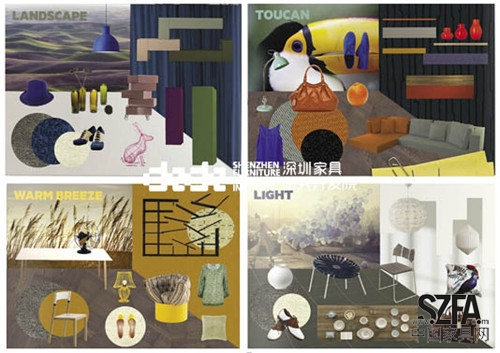 主題的表現(xiàn)可以借助于情緒模板(moodboard),通過(guò)相關(guān)主題方向的色彩、圖片、影像或其他材料的收集,從而引起某些情緒反應(yīng),以此作為設(shè)計(jì)方向或者是形式的參考,幫助明確視覺(jué)設(shè)計(jì)需求,用于提取配色方案、視覺(jué)風(fēng)格、質(zhì)感材質(zhì)。下面展示的案例是意大利先鋒品牌LAGO追隨四季的變化和生活節(jié)奏的變遷從而挖掘新的視角,來(lái)滿足不同人的口味。